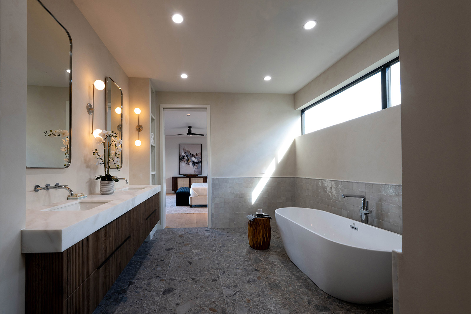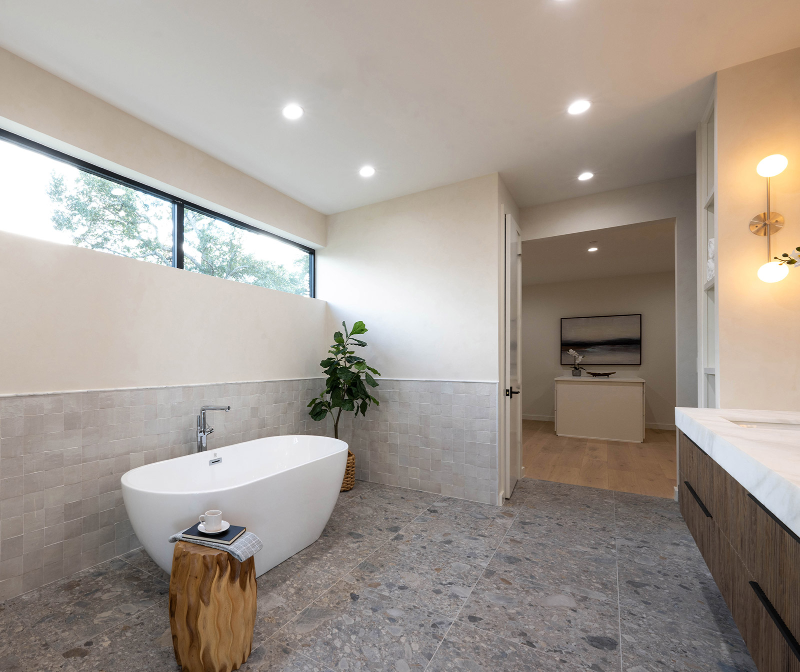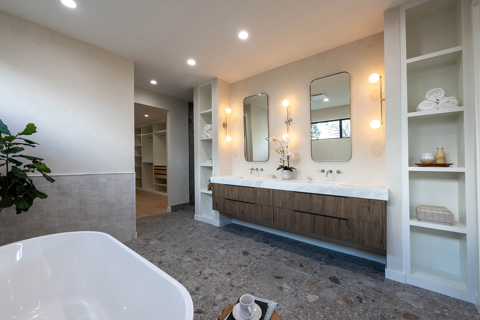 finishes and details including Italian millwork in the kitchens and baths. Skylights create a serene, spa-like